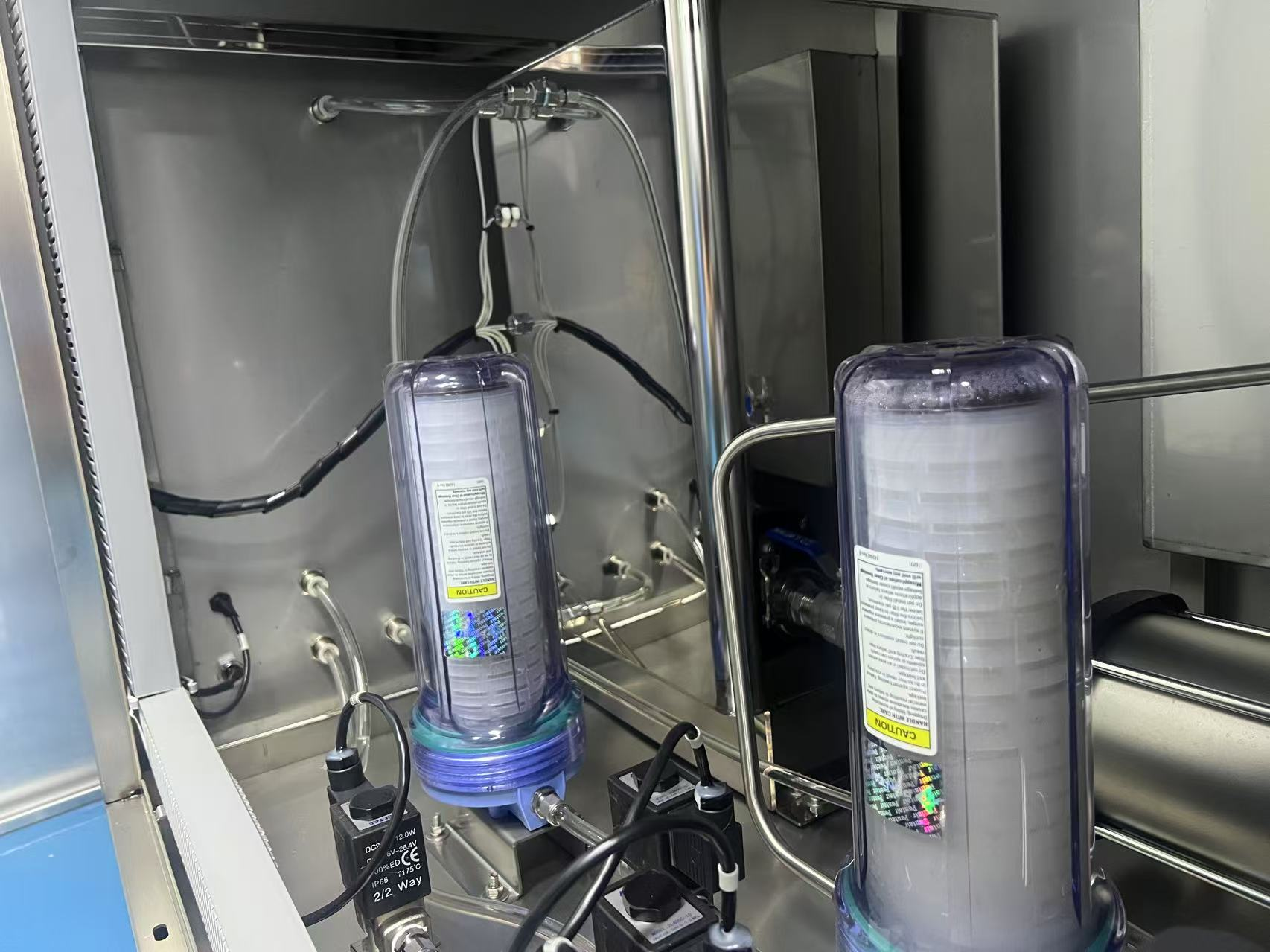 La zone supérieure de la chambre de nettoyage sous pression de l'équipement est équipée de plusieurs buses grand angle, qui peuvent nettoyer automatiquement les quatre parois du réservoir de nettoyage sous pression et préparer l'expérience au début.